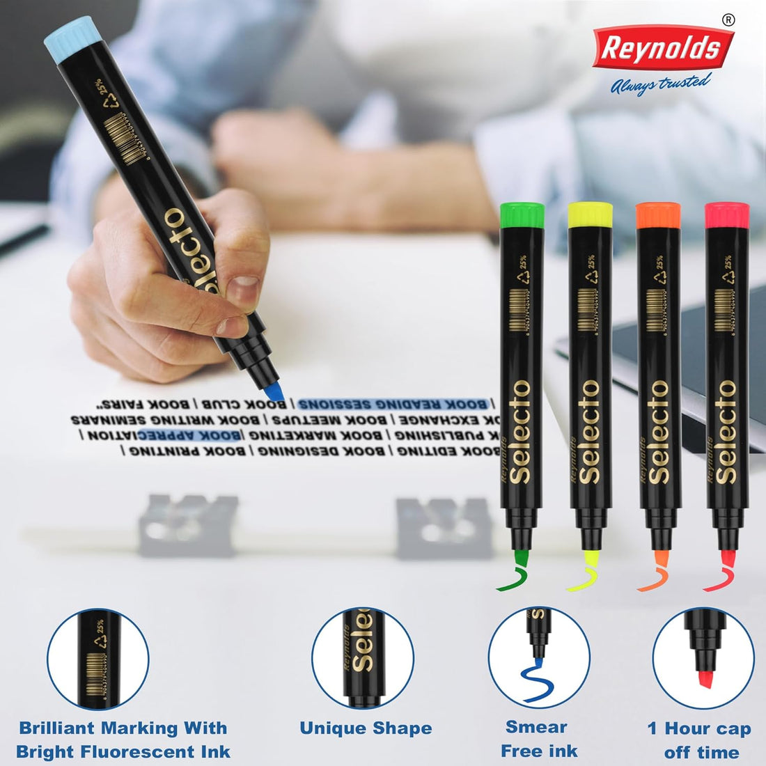 The SELECTO highlighter uses premium fluorescent ink for vivid emphasis The smear-free formula keeps underlying...