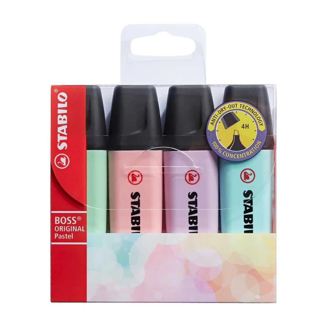 Stabilo Boss Highlighter Pastel, 4/set, Assorted Colors
