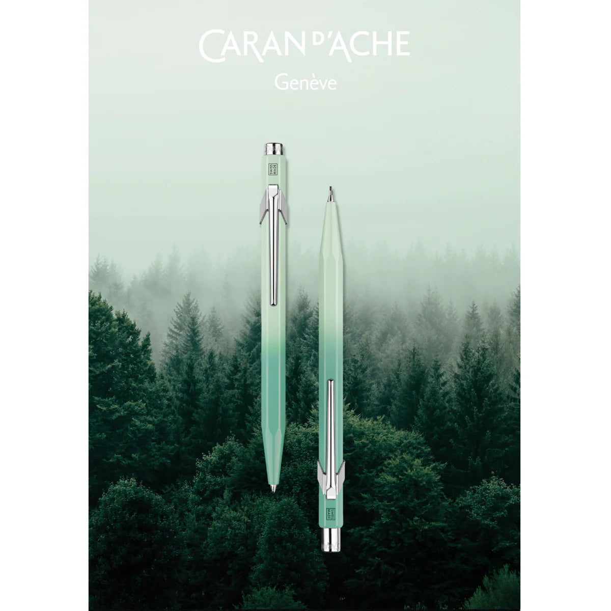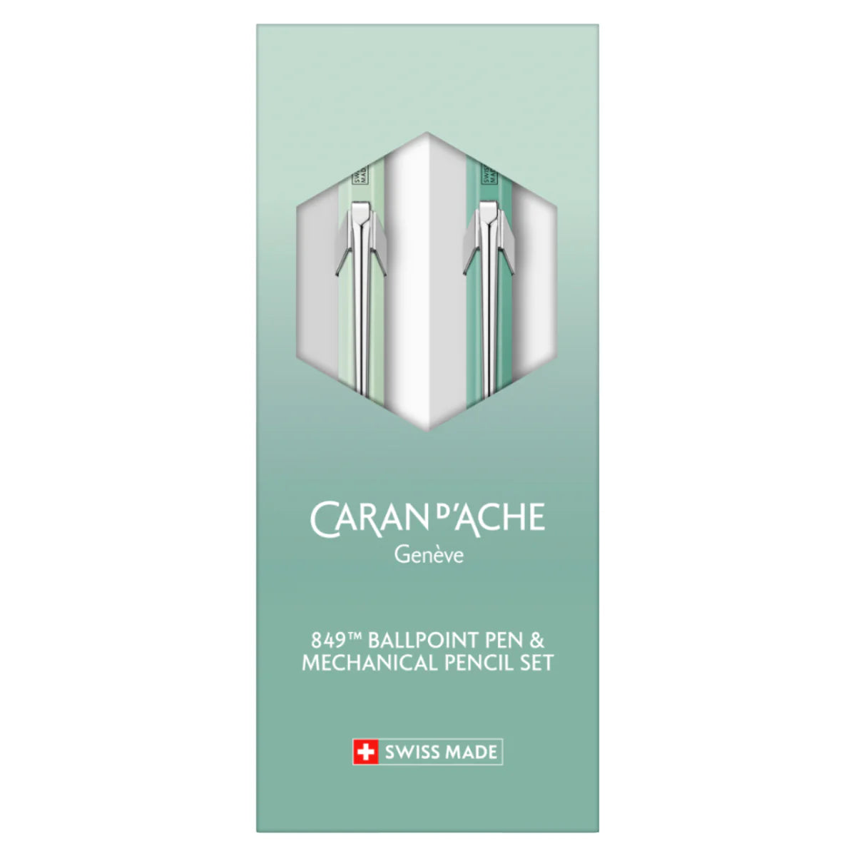 CARAN d'ACHE 849 Ballpoint Pen & Mechanical Pencil Metal, Misty Forest Set - Special Edition