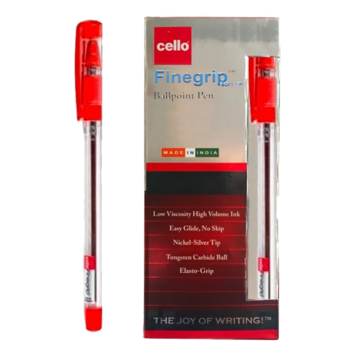 Cello Ballpoint Pen Finegrip soft tip, 0.7mm, 12/box, Red